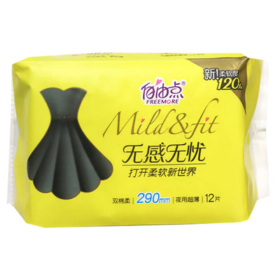 【自营】中国FREEMORE自由点 无感无忧 超薄夜用卫生巾 290mm 12片装 亲肤棉柔卫生巾
