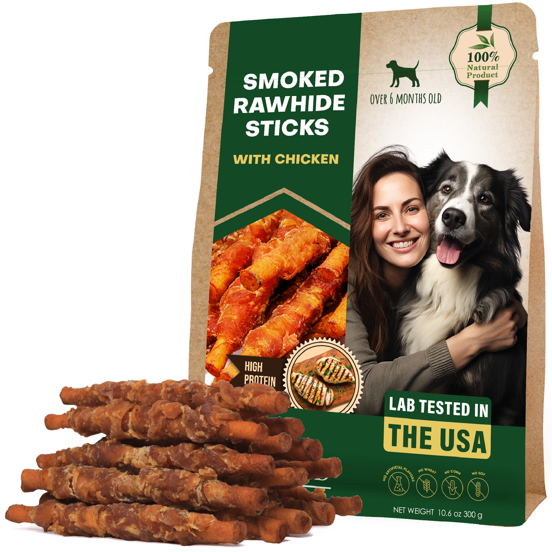 RAWHIDES STICK WRAPPED WITH REAL CHICKEN MEAT: You need to let your dog enjoy high quality natural and healthy food.It is right to choose our product. Dog chewies perfect for training, this hides bones will last a long time and can promote dogs' teeth healthy. Have less plaque and tartar. Keeps dogs' jaws strong and breath fresher. DOG CHEWS CONTAIN ONLY HIGH PROTEIN INGREDIENTS: Offer your four-legged sidekick our irresistible chicken strips puppy treats; made from 100% sourced meat, our healthy dog treats combine health protein, fresh dream meat and go-anywhere convenience. PERFECT HEALTHY TRAINING FUN SHAPE TWIST: Dehydrated to lock in flavor and nutrients, our high fiber jerky is the good healthy chewy food. Just break them into bite-sized pieces, and your happy puppies, premios para perros will be sitting pretty for their prime wrap snack. ALL-NATURAL GRAIN, CORN AND GLUTEN FREE DOG TREAT: Your pup deserves the best in life, which is why Beloved Pets raw hide Dog Treats are made with quality chicken o