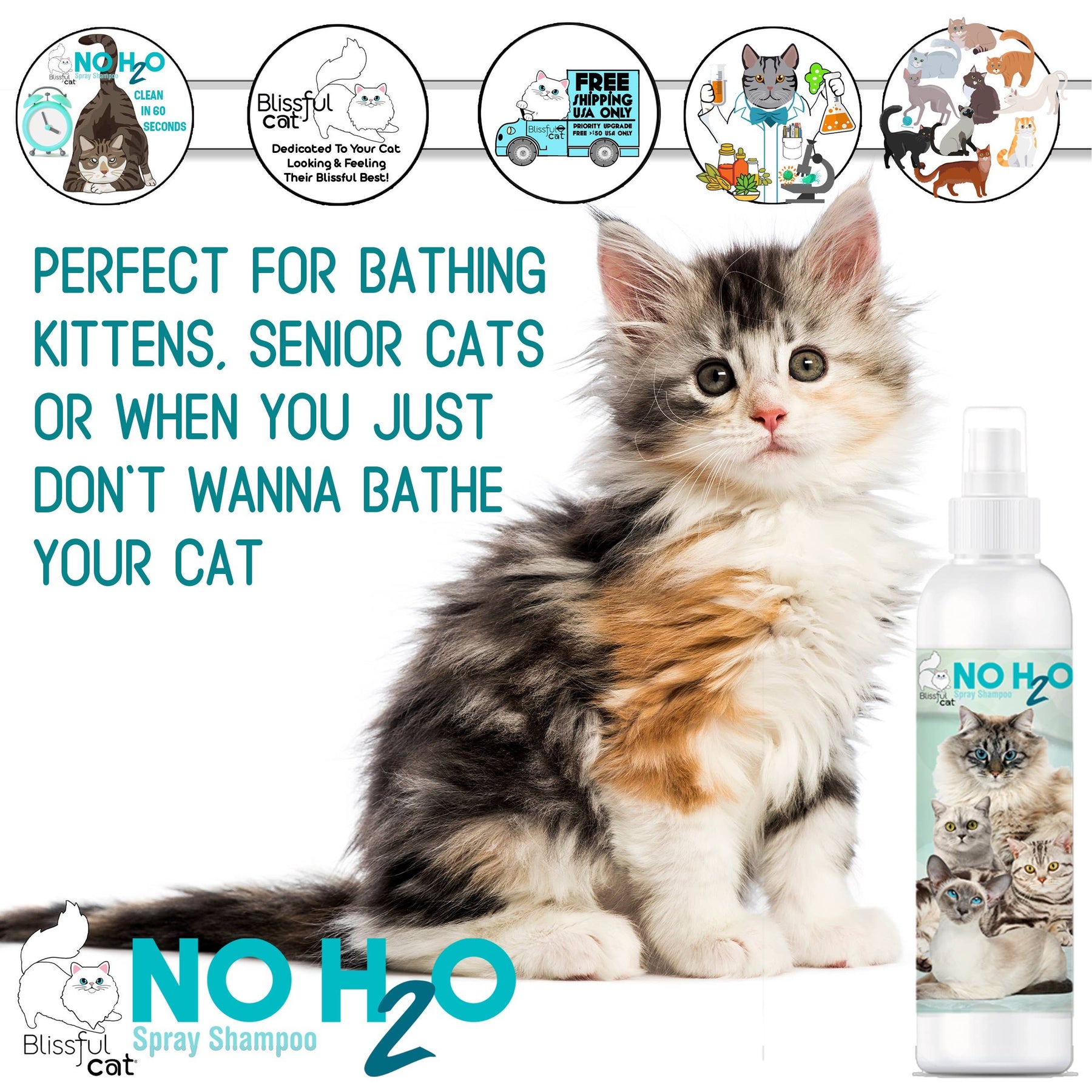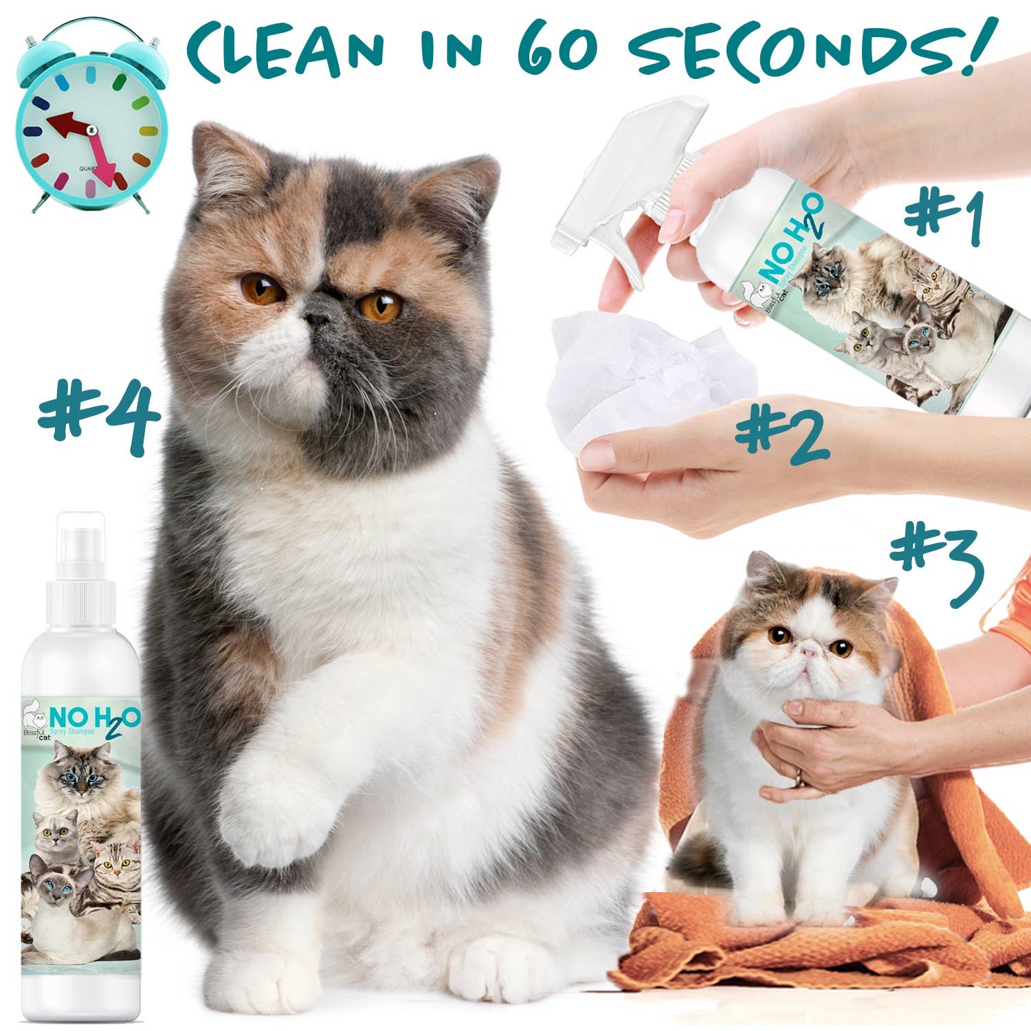 NO H20 Spray Cat Shampoo Clean & Refreshes Your Cat In Minutes Sure, your cat needs a real bath occasionally. But what about in-between times? Your cat played in...something and needs their paws bathed. Or your sweet senior cat had an accident and needs a clean-up. Grab your NO H20 Cat Spray Shampoo and in minutes you will have a clean cat AND you are dry and didn't get wet or scratched. IN 4, 8 & 16 oz Bottles + Gallons Perfect For: • Quick baths - when your dirty smelly cat needs a bath NOW • Senior pets - keep your senior pet fresh and clean • Traveling - use for a quick freshen-up while on-the-go • Shows - great for quick touch-ups at events or competitions • Cold weather usage - use as often as needed for clean cats • Kittens - Kittens are messy! Water, Mild Coconut derived cleanser (Coco Betaine & Ammonium Laureth Sulfate), Panthenol (Provitamin B5), Centrimonium Chloride. Aloe, Fragrance (Soft Mimosa & Nectar Botanical Essences), Citric Acid & Silver Citrate.