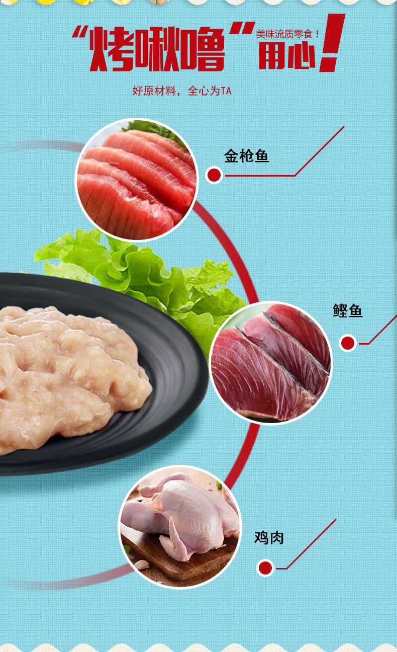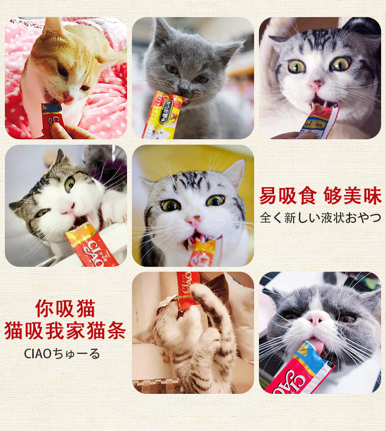 【自营】日本CIAO伊纳宝 猫零食Churu妙好烤啾噜柔软肉酱 美味猫条 10条装 鲣鱼节味