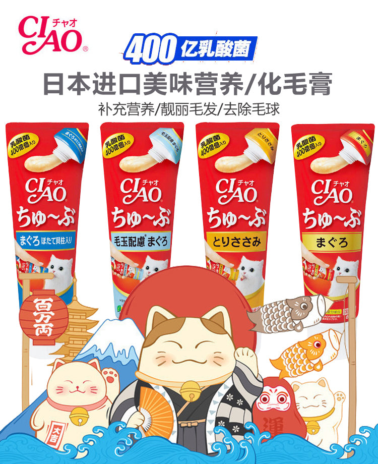 【自营】日本CIAO 400亿乳酸菌营养膏 80g 鸡肉味营养膏 啾噜流质猫零食