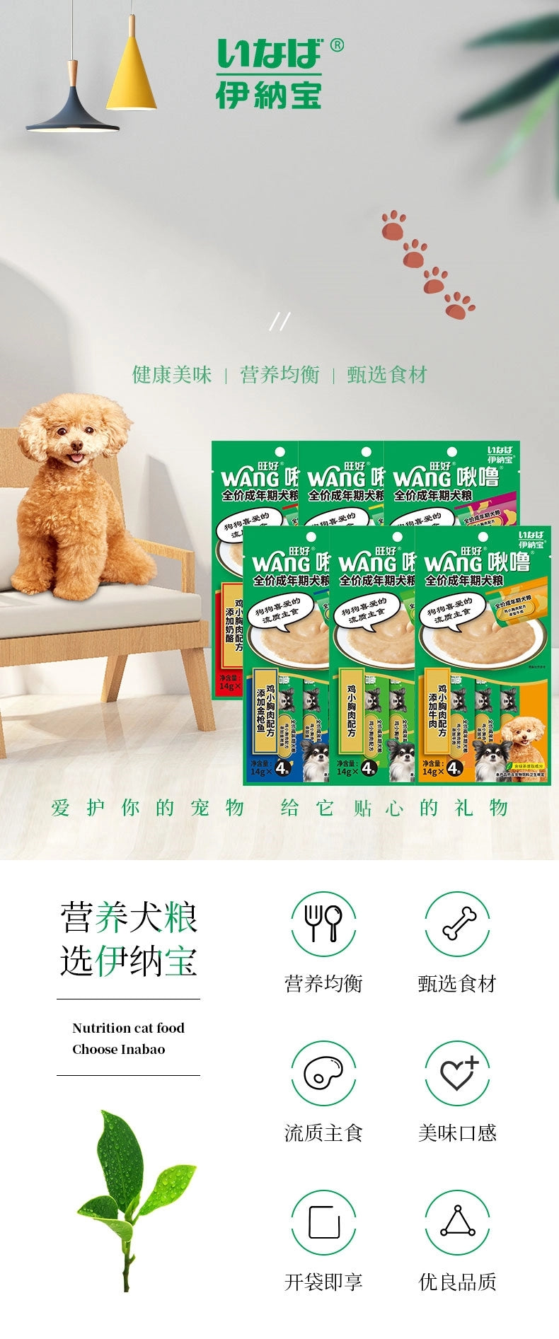 【自营】日本INABA伊纳宝 犬用狗零食 啾噜柔软肉酱 流质美味零食条 20条装 鸡肉混合口味 口气清新 口腔健康配方