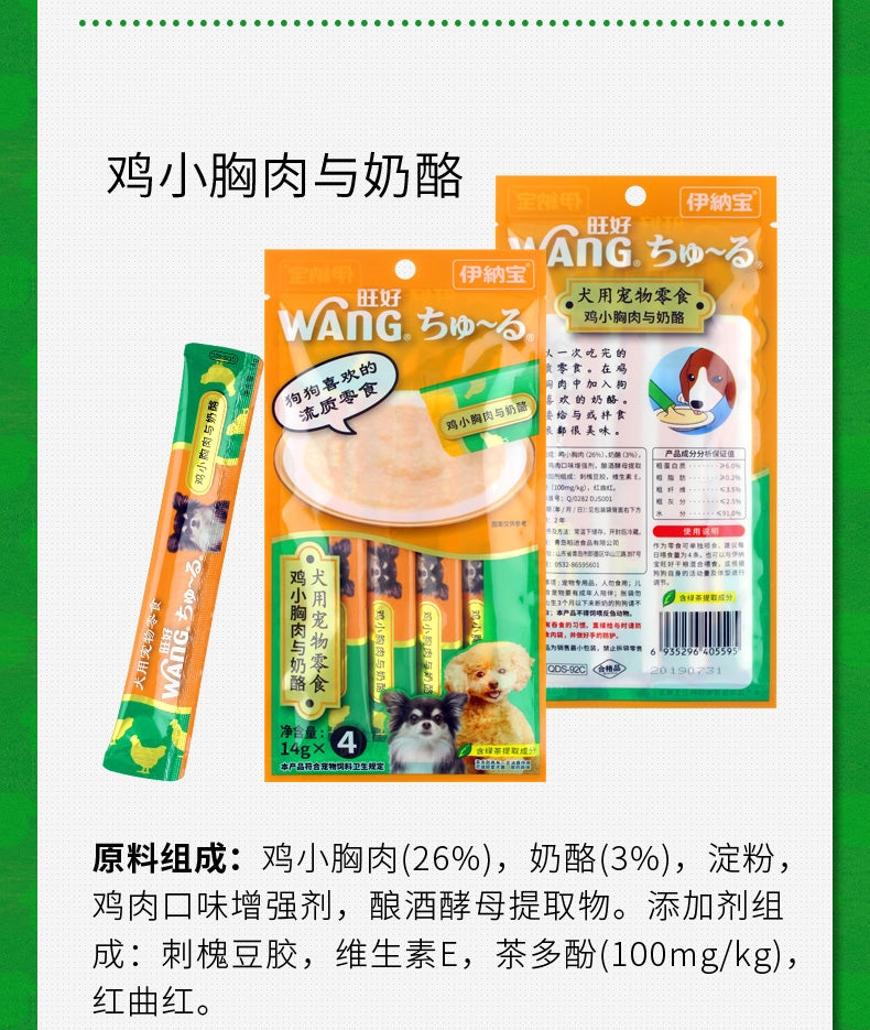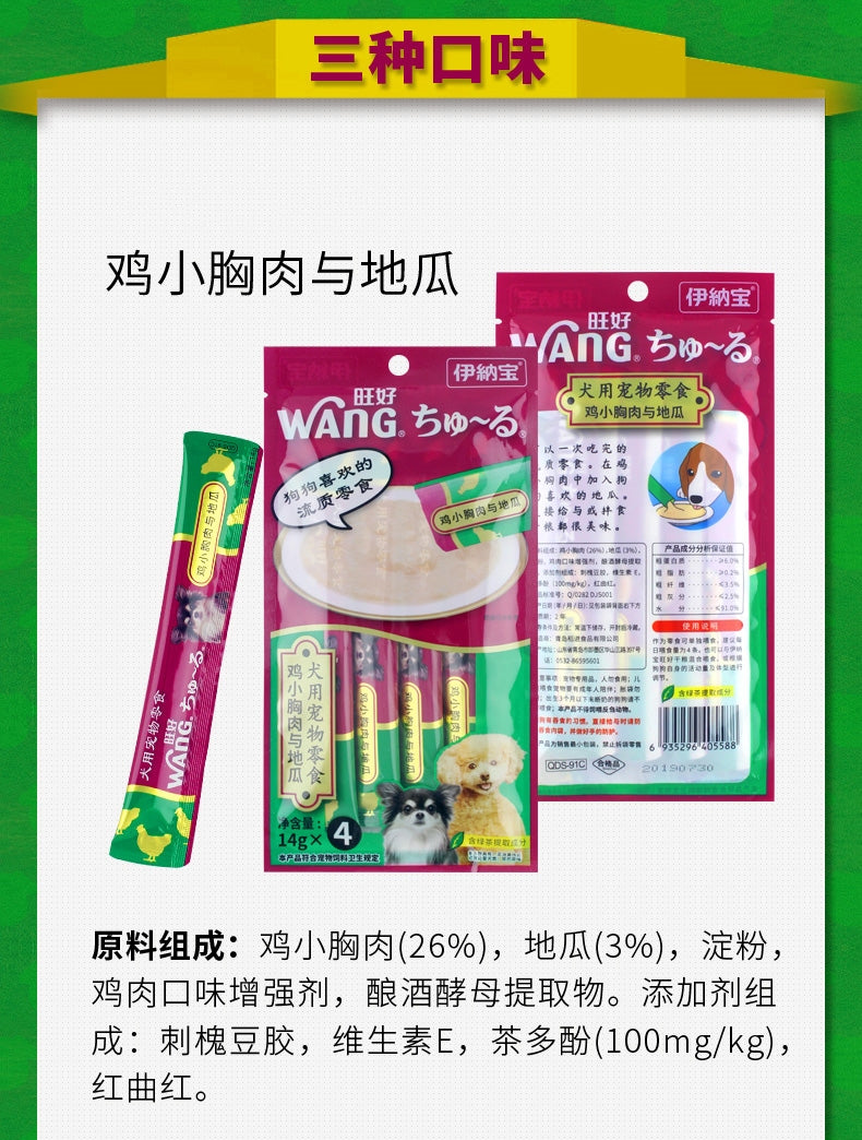 【自营】日本INABA伊纳宝 犬用狗零食 啾噜柔软肉酱 流质美味零食条 4条装 鸡小胸肉地瓜口味