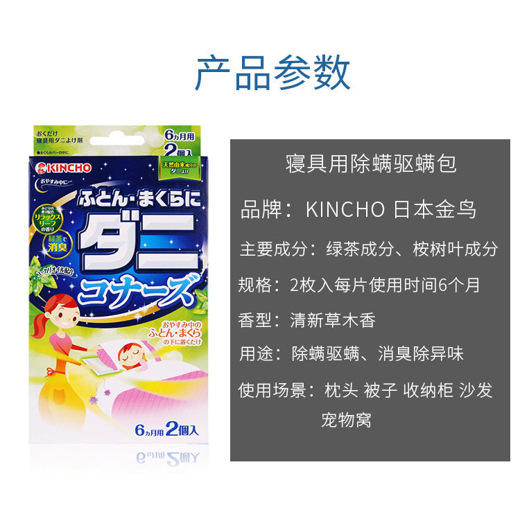【自营】日本KINCHO金鸟 床具用除螨虫垫 2个入 防螨虫除螨包