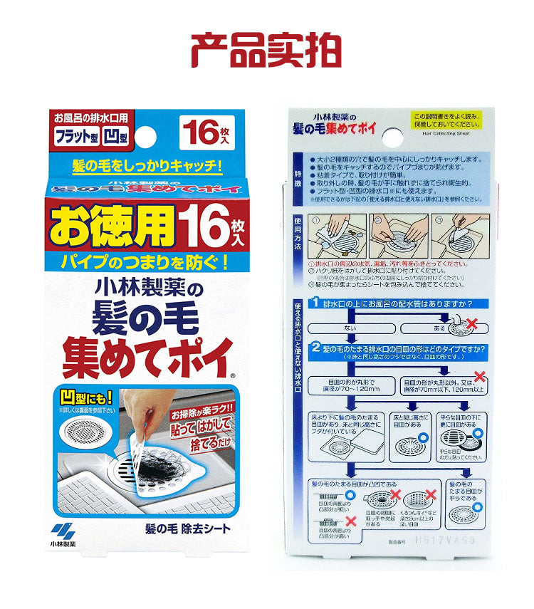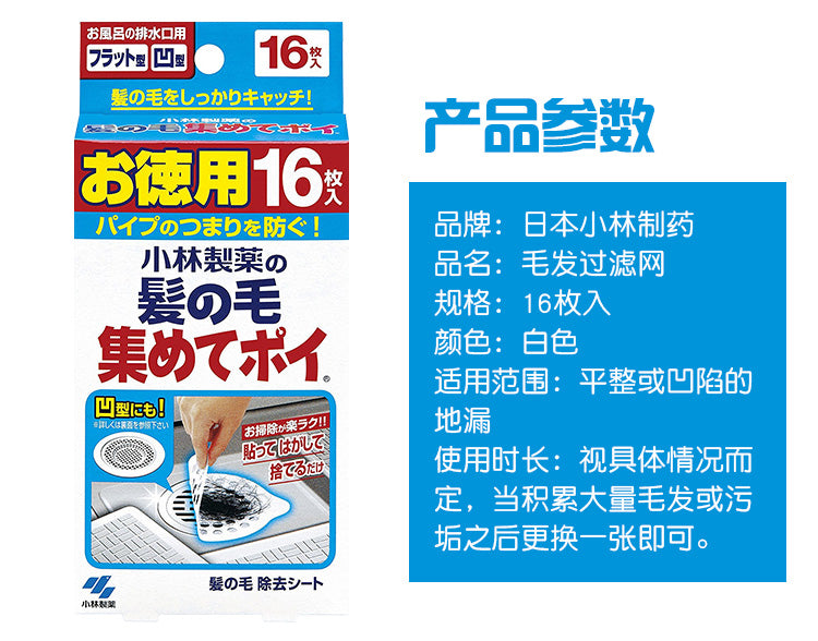 【自营】日本KOBAYASHI小林制药 下水道头发毛发过滤网 16枚入