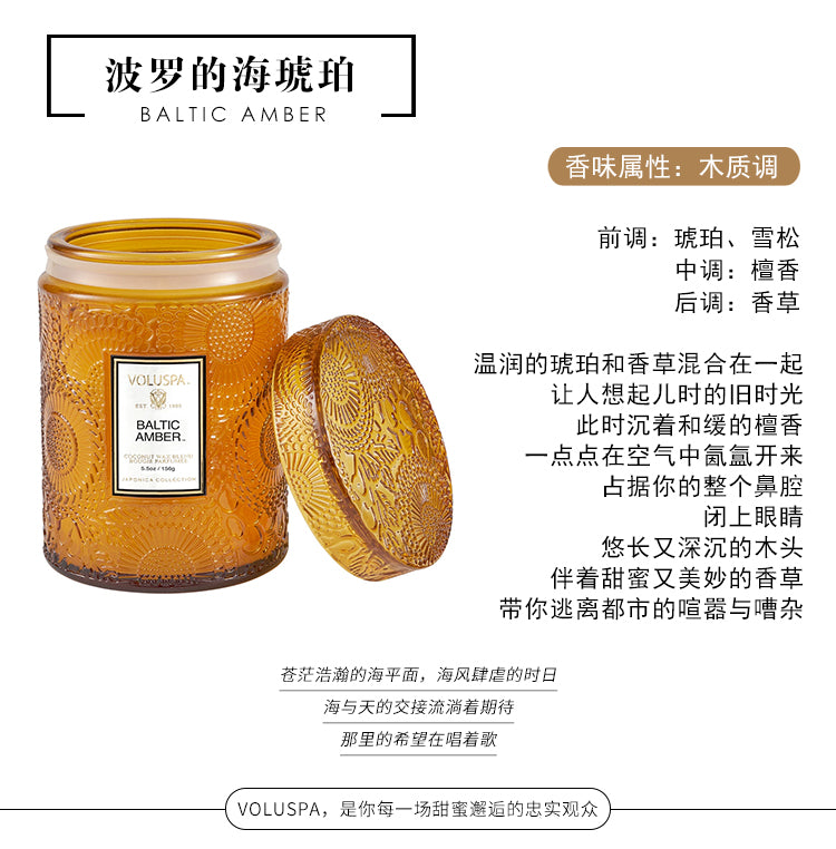 【自营】美国VOLUSPA 星空杯迷你大浮雕香薰蜡烛 156g 玻璃杯 BALTIC AMBER-波罗的海琥珀安神助眠 浪漫氛围 赠礼佳品