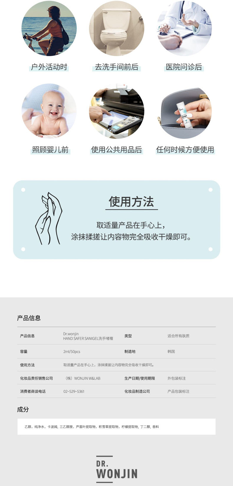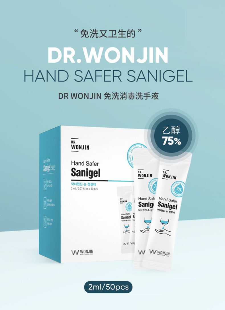 【自营】韩国Wonjin原辰 免洗洗手液 50条/盒 75%酒精 免洗 消毒杀菌凝胶 旅行装 便携带