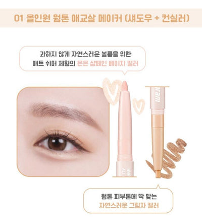 【自营】韩国COLORGRAM All in one双头眼线卧蚕笔 #01 Warm Tone 珠光金 0.2g+0.15g 提亮眼影笔自然持久防水不晕染