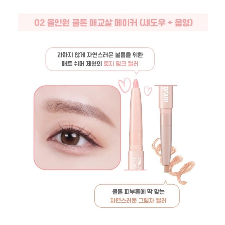【自营】韩国COLORGRAM All in one双头眼线卧蚕笔 #02 COOL TONE 珠光粉 0.2g+0.15g 提亮眼影笔自然持久防水不晕染