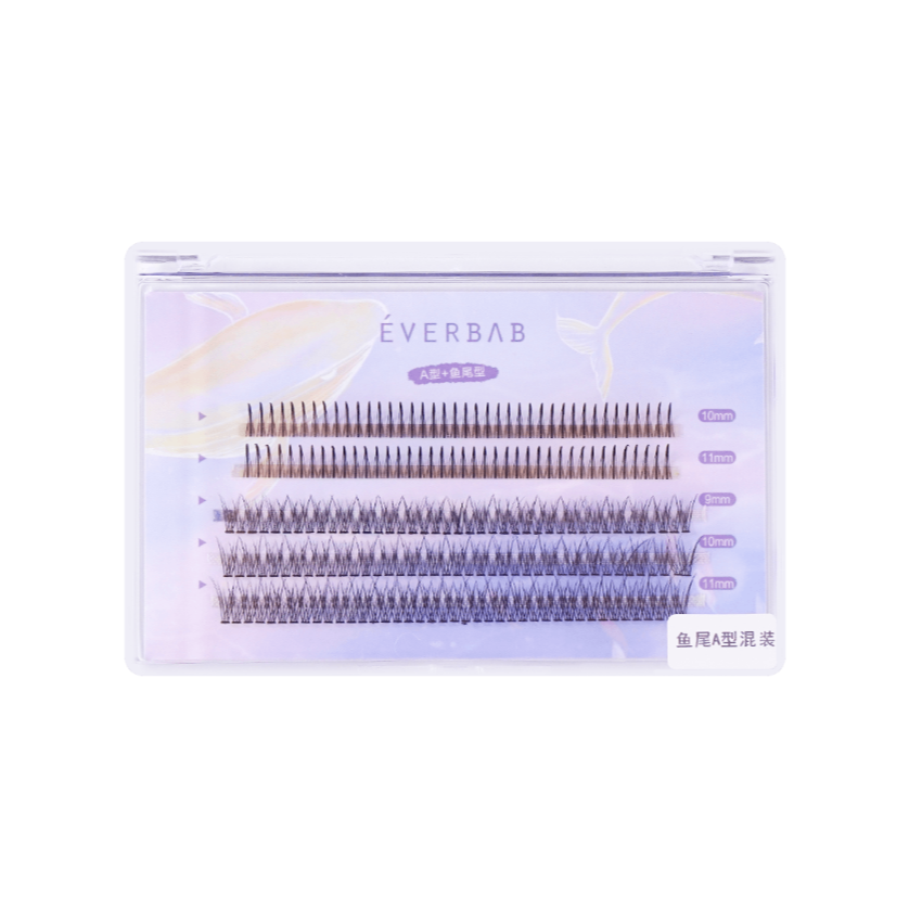 【自营】中国EVERBAB艾蓓拉 单簇假睫毛混合装 自然A型+鱼尾型 仙子毛 80朵+120朵 自然易用性浓密单株假睫毛
