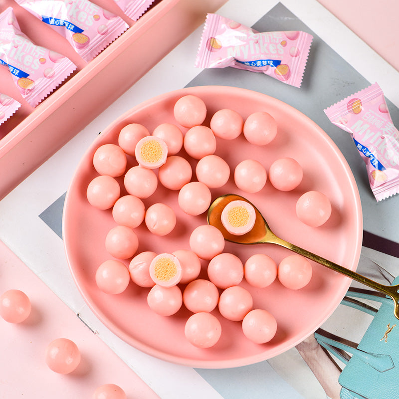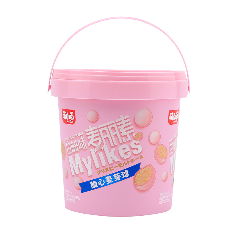 【自营】中国萌小白 嚼爽麦丽素 白桃味 168g 桶装 巧克力豆糖果朱古力零食代可可脂