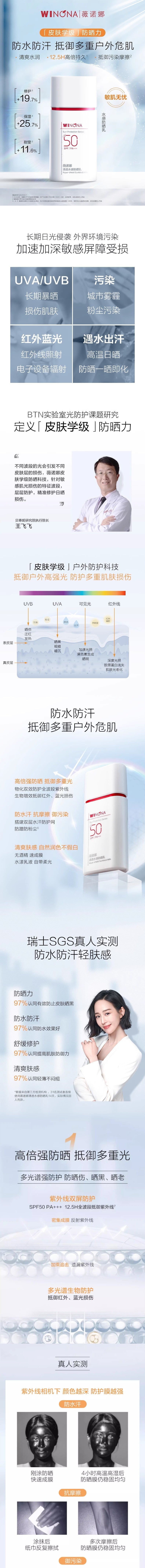 【自营】中国WINONA薇诺娜 清透水感防晒乳 50g SPF50 PA+++ 敏感肌户外专属防水防汗