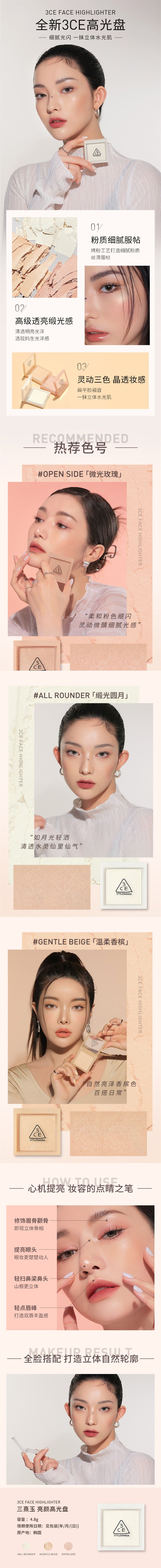 【自营】韩国3CE三熹玉 亮颜高光盘 #Gentle Beige 温柔香槟 4.8g 亮颜钻石细闪脸部提亮自然细腻