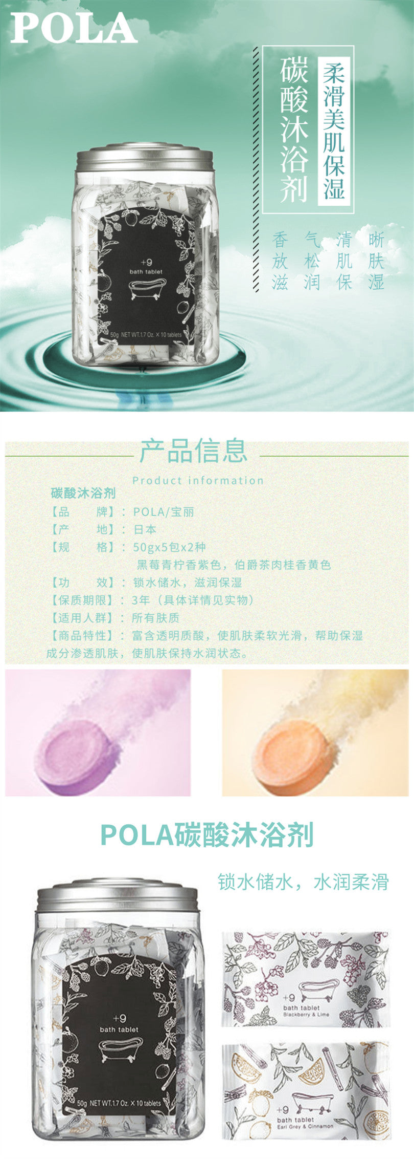 【自营】日本POLA宝丽 +9碳酸沐浴剂 50g*10袋 保湿滋润舒缓肌肤缓解压力泡澡神器