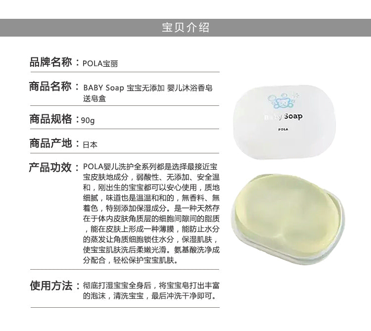【自营】日本POLA宝丽 Baby Cream宝宝婴儿保湿滋润沐浴皂 香皂 90g 送皂盒 温和无添加