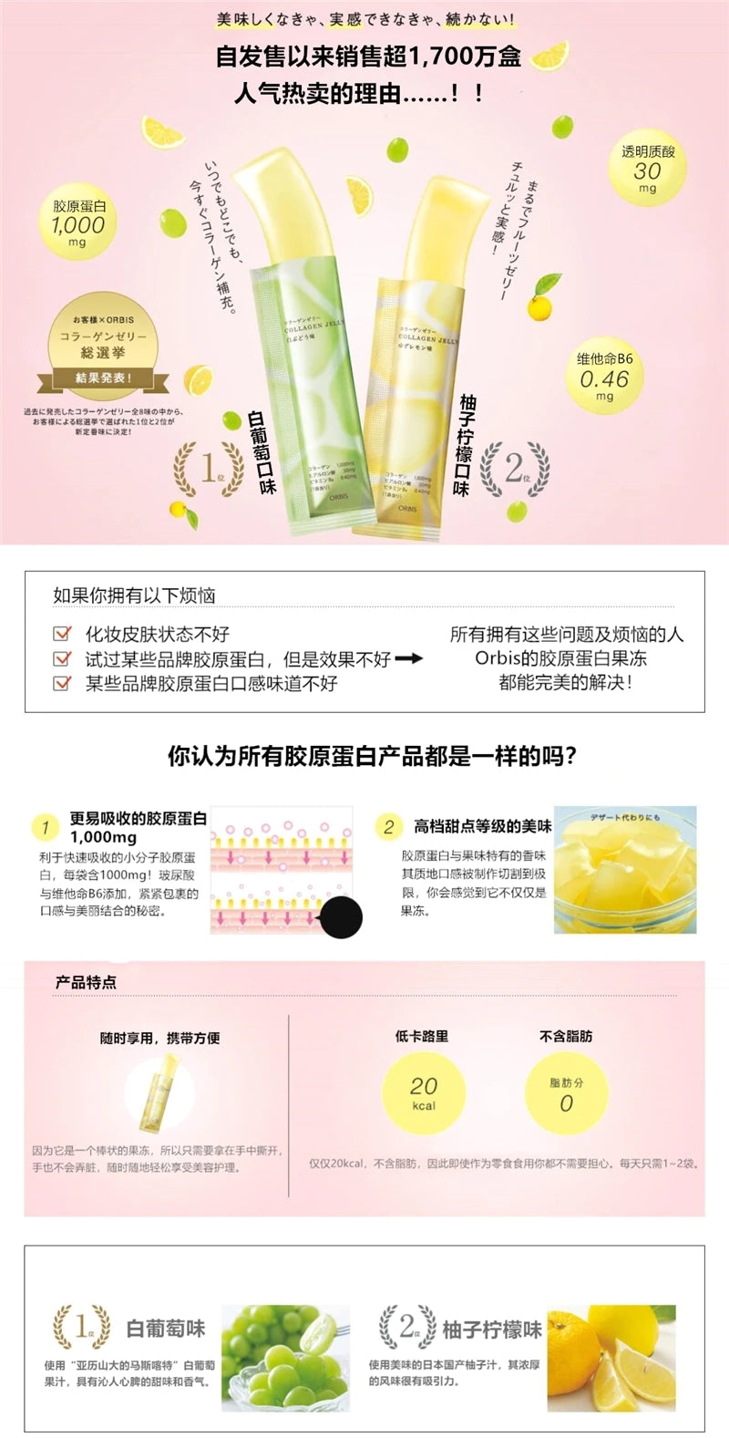 【自营】日本POLA旗下 ORBIS 奥蜜思新款胶原蛋白果冻 爽口美味 柚子柠檬口味 20g×14袋